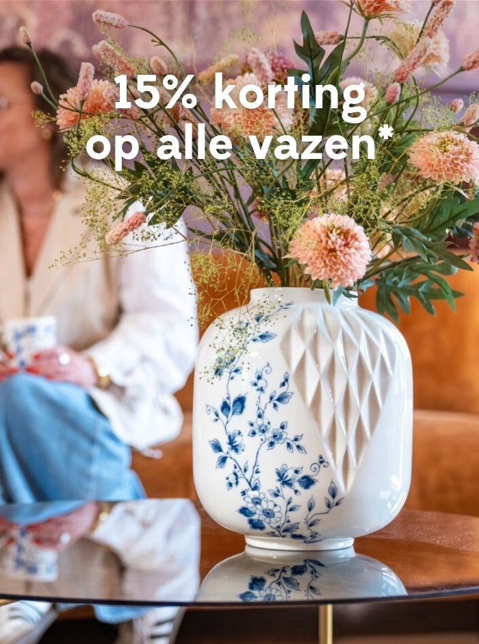 Tijdens de Moederdagactie ontvang je 15% korting op alle vazen, met uitzondering van vazen die voorzien zijn van handschilderwerk. Deze producten zijn uitgesloten van deelname aan de actie. De actie is geldig van 28 april tot en met 10 mei. De korting wordt automatisch verrekend in de winkelwagen of bij het afrekenen en is niet geldig in combinatie met andere acties, aanbiedingen of kortingscodes. De Moederdagactie is alleen geldig gedurende de genoemde actieperiode en zolang de voorraad strekt. Heinen Delfts Blauw behoudt zich het recht voor om de actievoorwaarden tussentijds te wijzigen of de actie voortijdig te beëindigen. Eventuele prijswijzigingen, druk- en zetfouten voorbehouden.