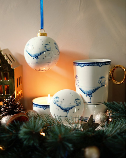 Een Delfts blauwe kerstbal met het sterrenbeeld tweelingen erop. Deze kerstbal met sterrenbeeld is ontworpen door beeldend kunstenaar Redmer Hoekstra. Je herkent zijn illustraties meteen aan hun humoristische en dagdromerige illustraties. Een bonte optocht van surrealistische figuren uit de dierenriem, die de wereld van Heinen Delfts Blauw komen binnenmarcheren, kruipen of rollen. Bekende vazen en serviesstukken zijn de ongewone vervoersmiddelen van deze astrologische dieren. Deze bijzondere Zodiak collectie kerstballen voert je mee naar een nieuwe wereld vol humor. Op deze kerstbal heeft Redmer Hoekstra zijn eigen interpretatie van het sterrenbeeld tweelingen gemaakt. De twee nieuwsgierige uiltjes raken niet uitgekeken en uitgesproken met elkaar. Terwijl de één het onderwerp vanuit een optimistische kant bekijkt, heeft de ander er iets meer bedenkingen bij. De vliegensvlugge gekko zorgt ervoor dat ze niet te lang ergens stil bij blijven staan. Een bijzonder leuk cadeau voor iemand anders, of voor jezelf zodat je altijd je eigen spirit animal dichtbij je hebt.