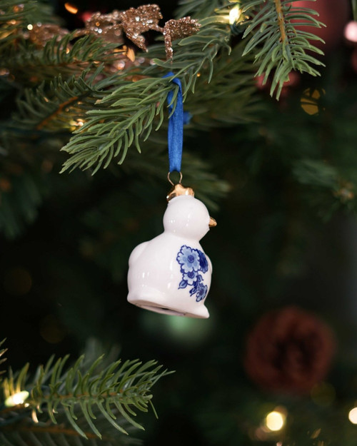 Een kerstornament voor in de kerstboom in de vorm van een speelse kat. De kersthanger is gemaakt van keramiek en de zijkanten zijn gedecoreerd met kleine Delfts blauwe bloemen, terwijl de uitdagende staart goudkleurig is. De kersthanger is onderdeel van de moderne kerstcollectie van Heinen Delfts Blauw, waarbij klassieke kerstbeelden en iconen opnieuw uitgebracht worden met een moderne uitstraling. De kerstcollectie bestaat uit figuren die symbolisch zijn geworden voor een warme, traditionele kerst, maar er komen ook verrassende en grappige figuren voorbij. Combineer de kersthanger speelse kat met andere Delfts blauwe kerstornamenten voor een kerstboom vol traditie, gouden glinsteringen en gezellige figuren.